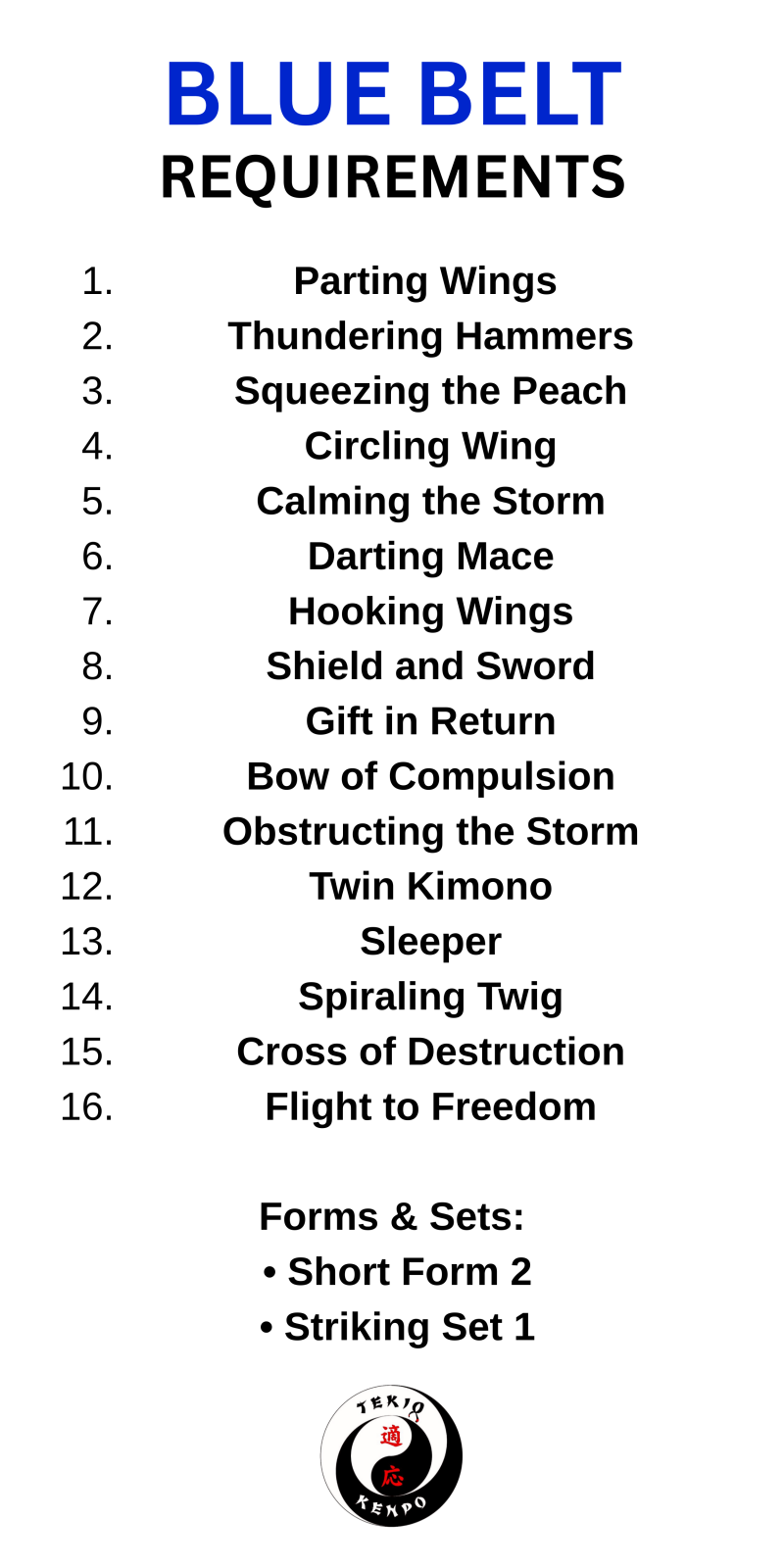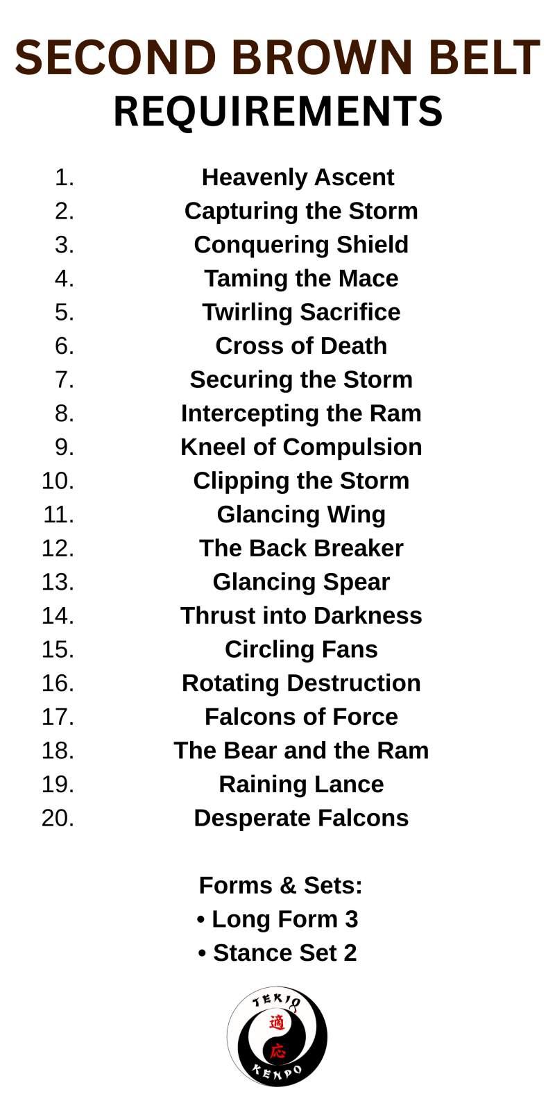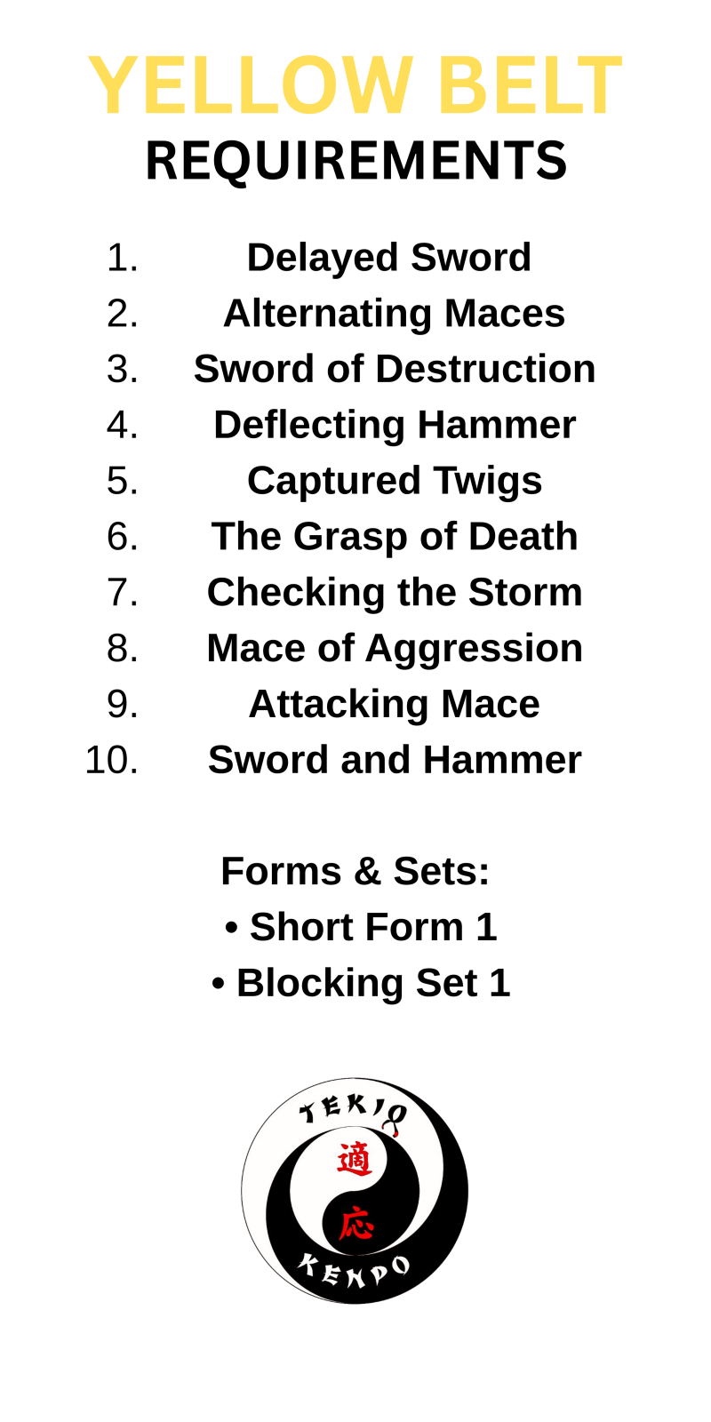 At Tekio Kenpo Academy, every belt you earn tells a story – a story of dedication, growth, and mastery. Our belt requirements are designed to challenge and transform you, guiding you from white belt to black belt and beyond. Discover what it takes to advance at Tekio, where each step is a testament to your commitment to American Kenpo Karate.