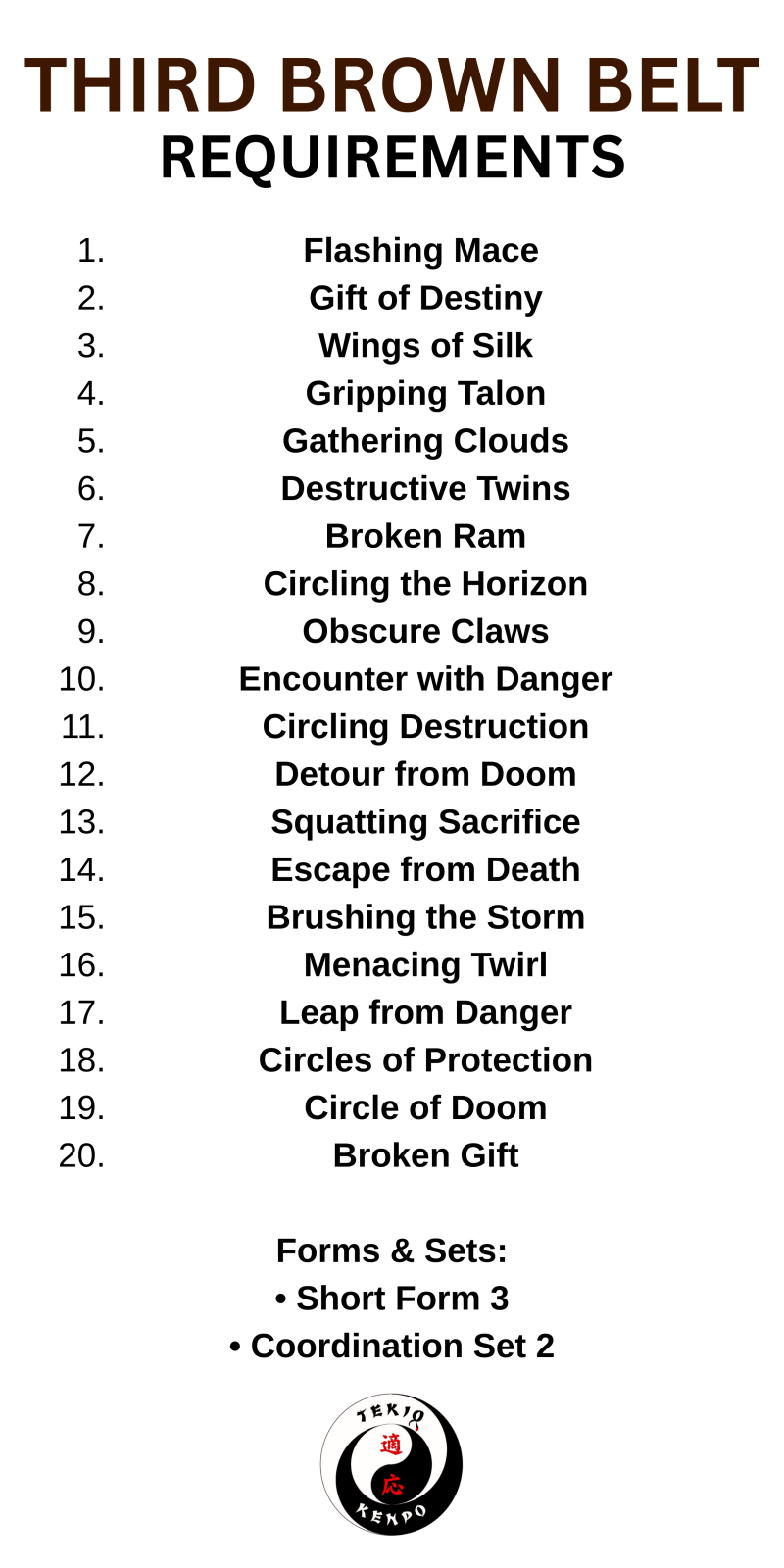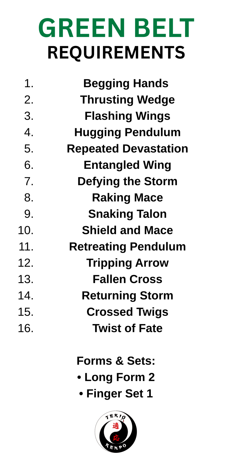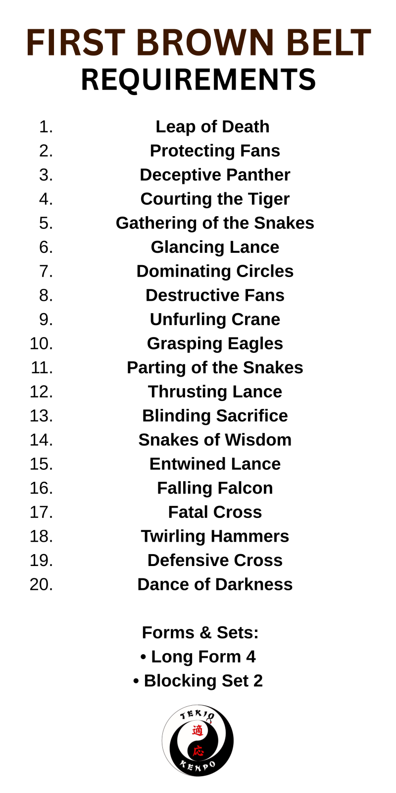 At Tekio Kenpo Academy, every belt you earn tells a story – a story of dedication, growth, and mastery. Our belt requirements are designed to challenge and transform you, guiding you from white belt to black belt and beyond. Discover what it takes to advance at Tekio, where each step is a testament to your commitment to American Kenpo Karate.